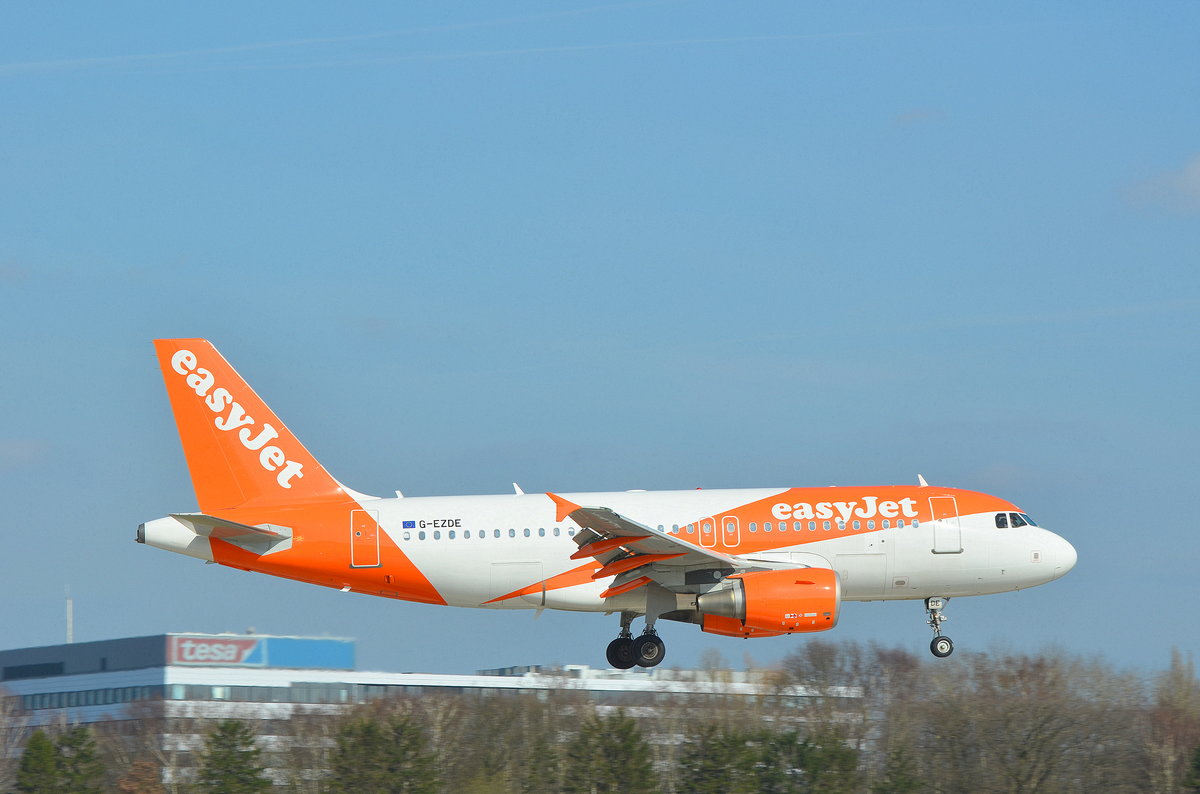 EasyJet Airbus A319 G-EZDE bei der Landung in Hamburg Fuhlsbüttel am 02.04.16