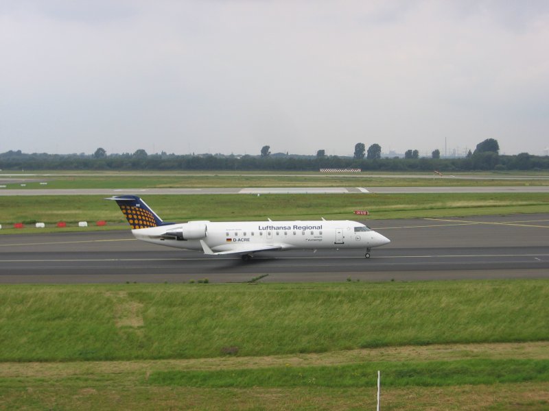 Ein CRJ 200 der Lufthansa Regional rollt am 12.07.2007 zur Startbahn um kurz danach nach Frankfurt zu fliegen.
