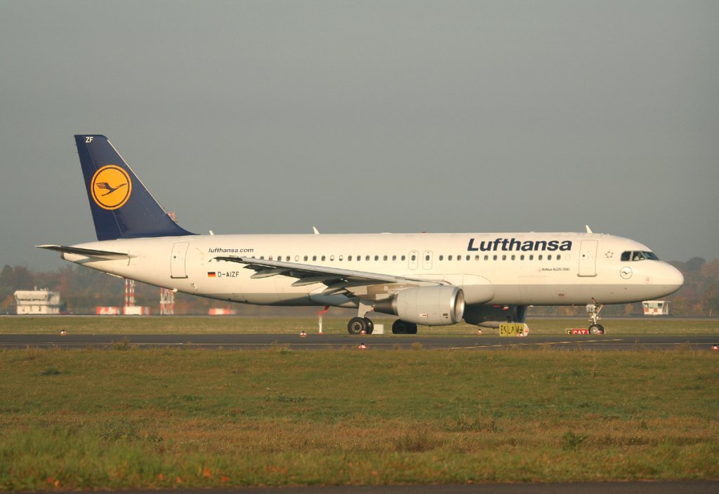 Lufthansa A 320-214 D-AIZF auf dem Weg zum Start in Düsseldorf am 31.10.2011