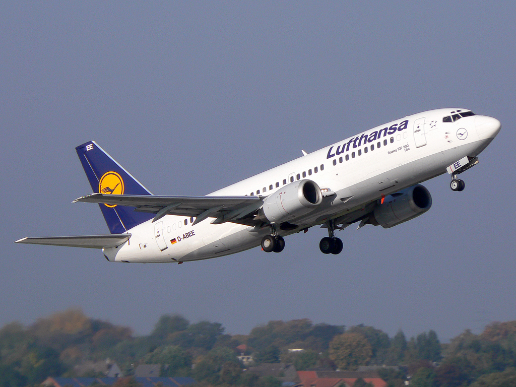 Lufthansa B737-300 D-ABEE nach dem Takeoff auf 05R in DUS / EDDL / Düsseldorf am 07.10.2007