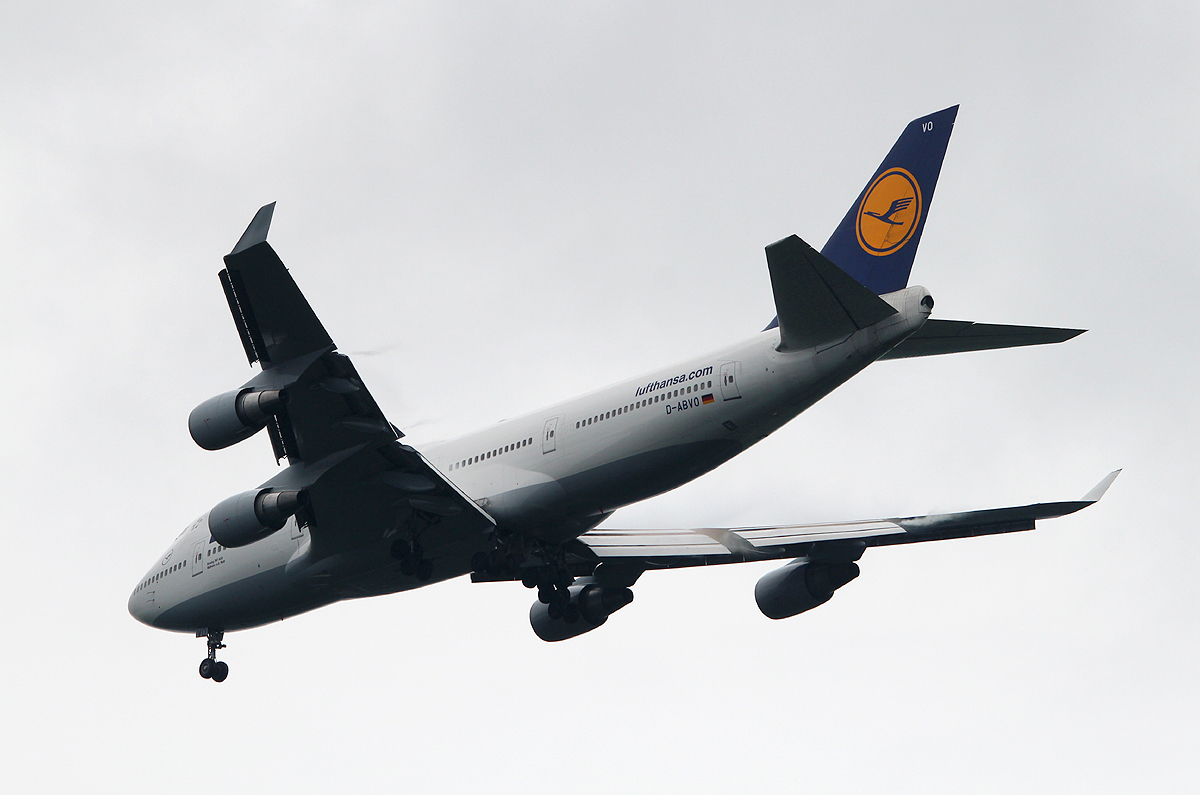 Lufthansa B 747-430 D-ABVO "Mühlheim a.d.Ruhr" bei der Landung in Frankfurt am 09.06.2013