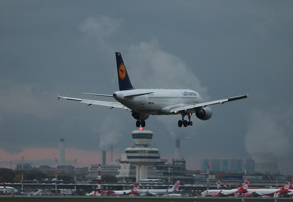 Lufthansa A 320-211 D-AIQC "Zwickau" bei der Landung in Berlin-Tegel am 09.11.2013