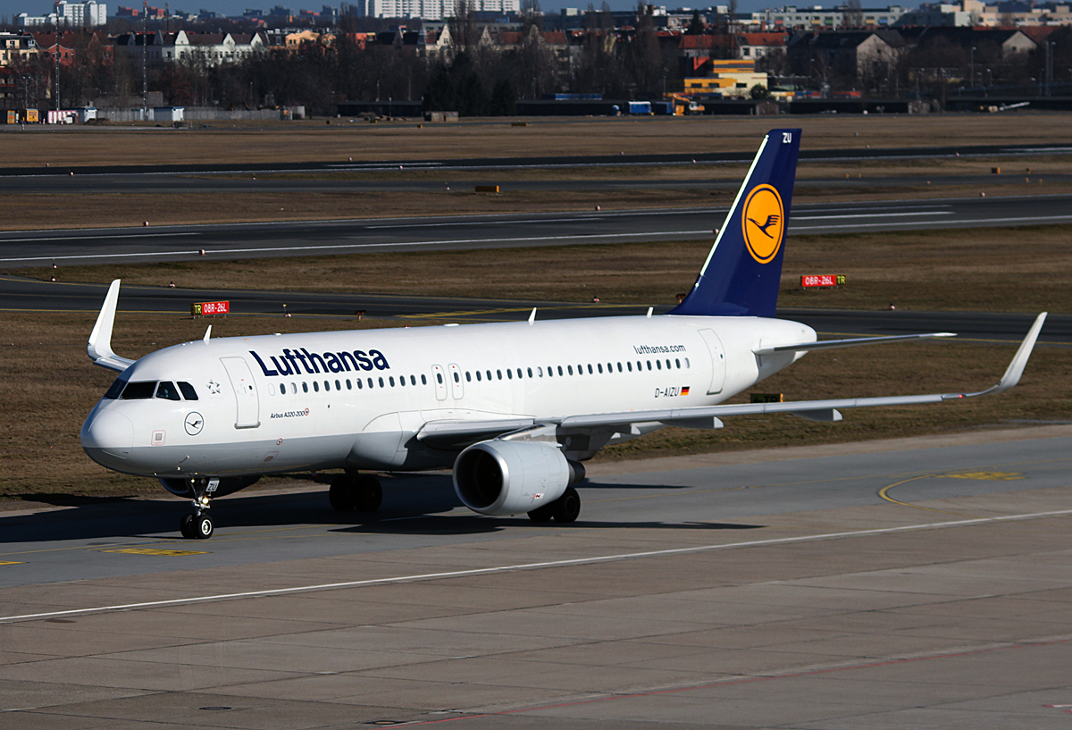 Lufthansa A 320-214 D-AIZU bei der Ankunft in Berlin-Tegel am 08.03.2014
