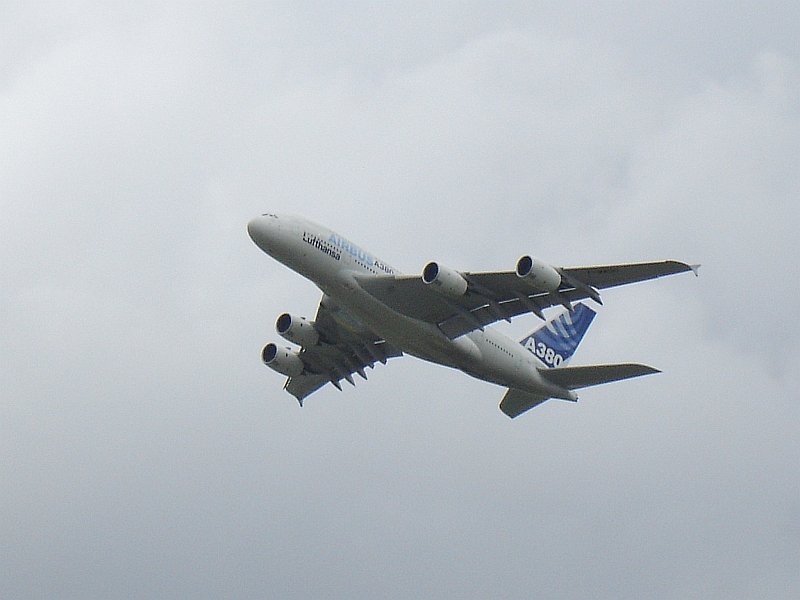 A380 beim Showflug über dem ILA Gelände 2006 in Berlin Schönefeld.