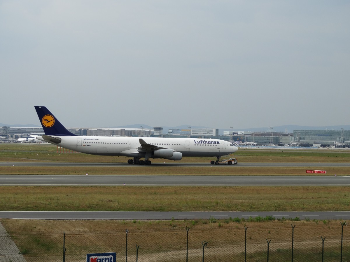 Lufthansa Airbus A340 D-AIGW in Frankfurt am Main Flughafen am 23.05.15 von einen Planespotterpunkt aus fotografiert