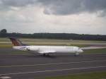 Bei ein bisschen Sonne gleitet der A340 der Lufthansa auf die 05R in Düsseldorf zu.