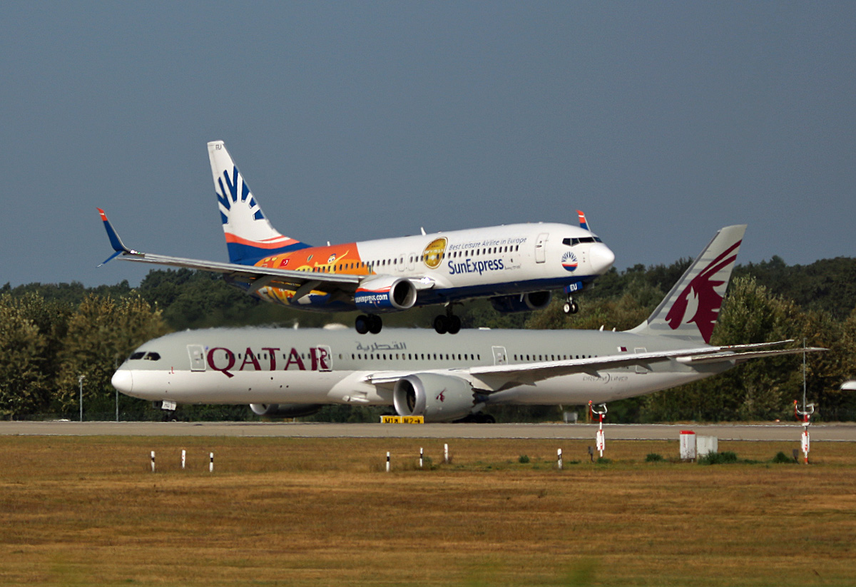SunExpress, Boeing B 737-8HC, TC-SEU, Qatar Airways, Boeing B 787-9 Dreamliner, A7-BHQ, BER, 01.09.2024