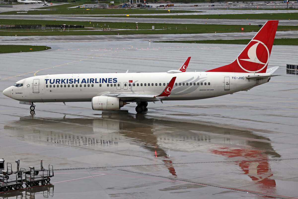 Turkish Airlines, TC-JVC, Boeing B737-8F2, msn: 42005/4886, "Şahinbey", 01.April 2024, ZRH Zürich, Switzerland.