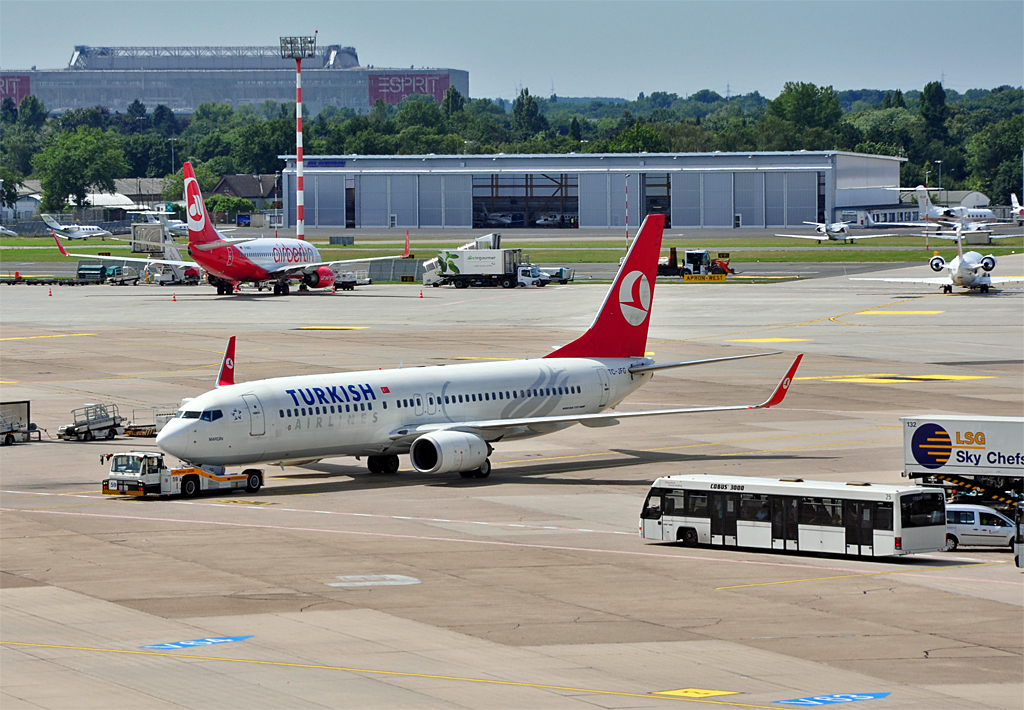 B 737-800 TC-JFG Turkish Airlines und Vorfeldbetrieb in Düsseldorf - 24.07.2012