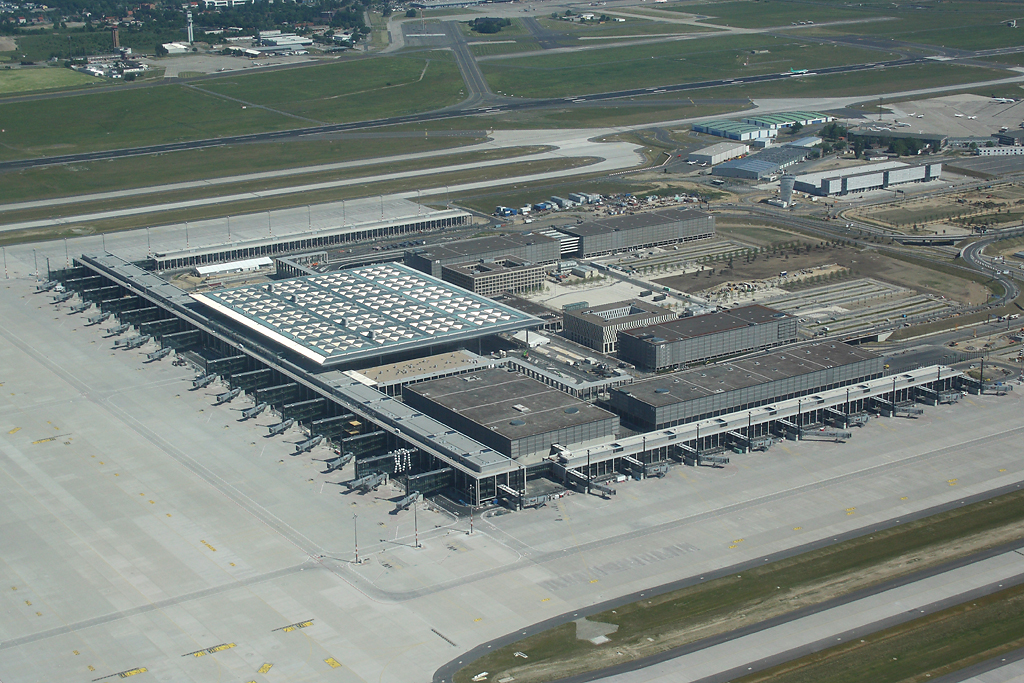 Das neue Terminal des Flughafens Berlin Brandenburg Willy Brandt aus der Luft; 26.05.12