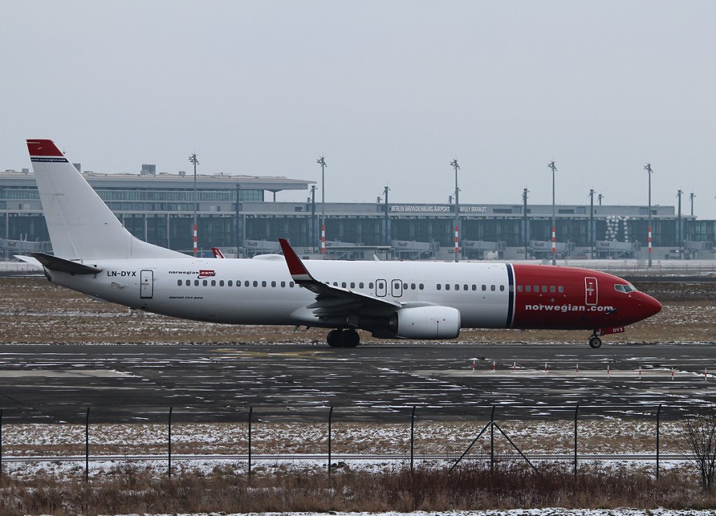 Norwegian Air Shuttle B 737-8JP LN-DYX auf dem Weg zum Start in Berlin-Schönefeld am 20.01.2013