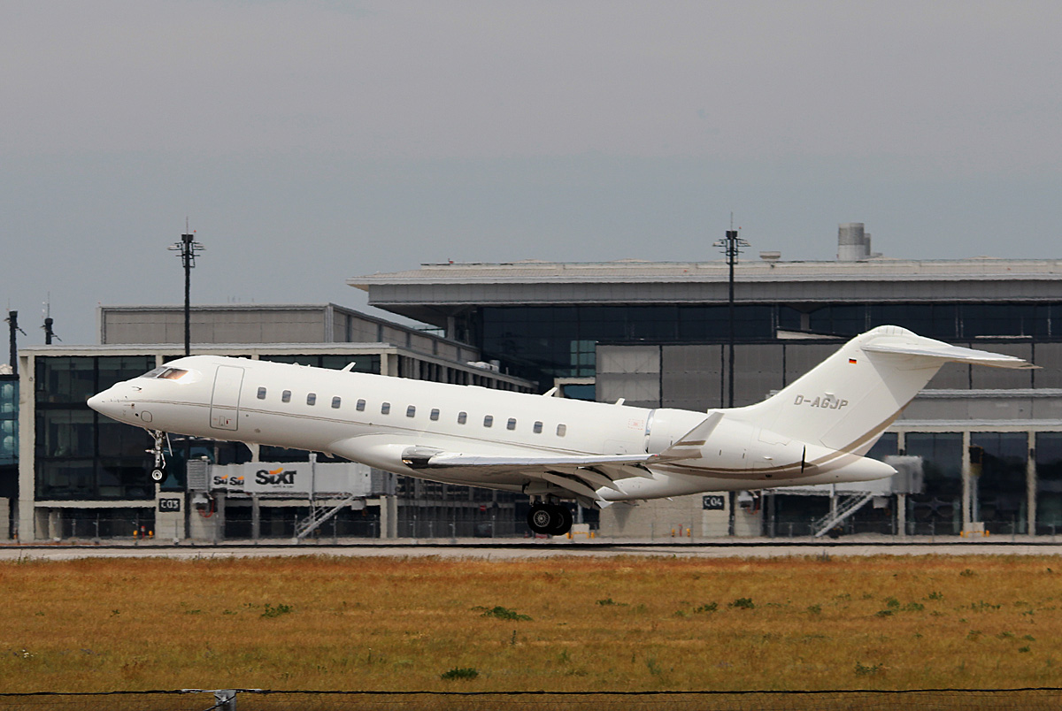 ACM Charter BD-700-1A10 Global 6000 D-AGJP bei der Landung in Berlin-Schönefeld(BER) am 06.06.2015 (Uefa CL-Finale 2015)