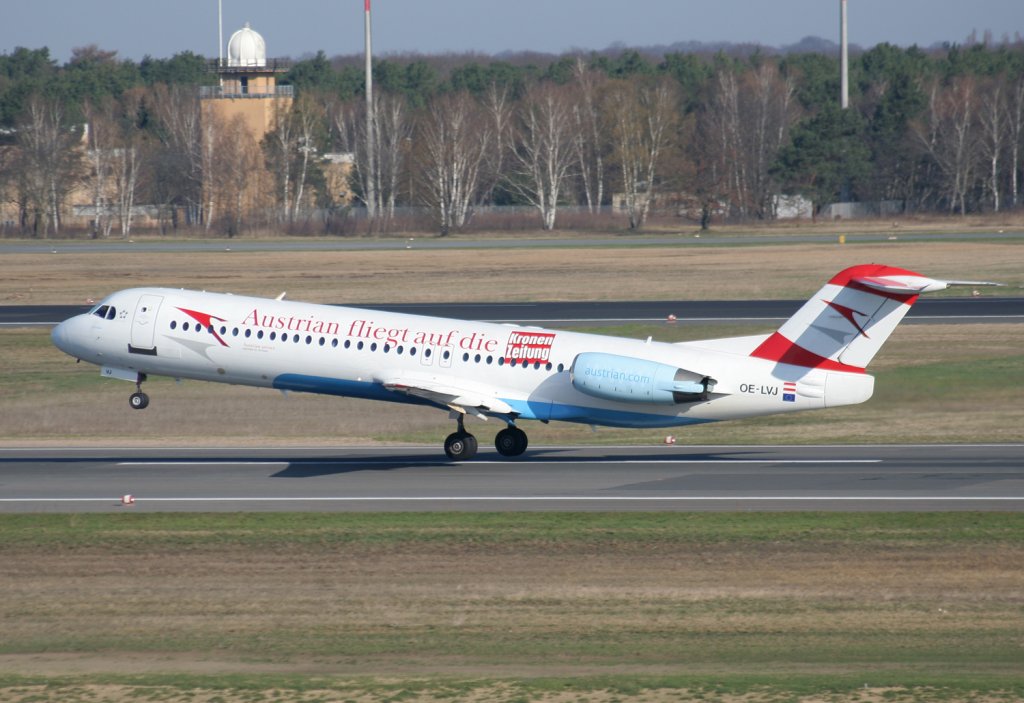 Austrian Arrows Fokker 100 OE-LVJ beim Start in Berlin-Tegel am 02.04.2010