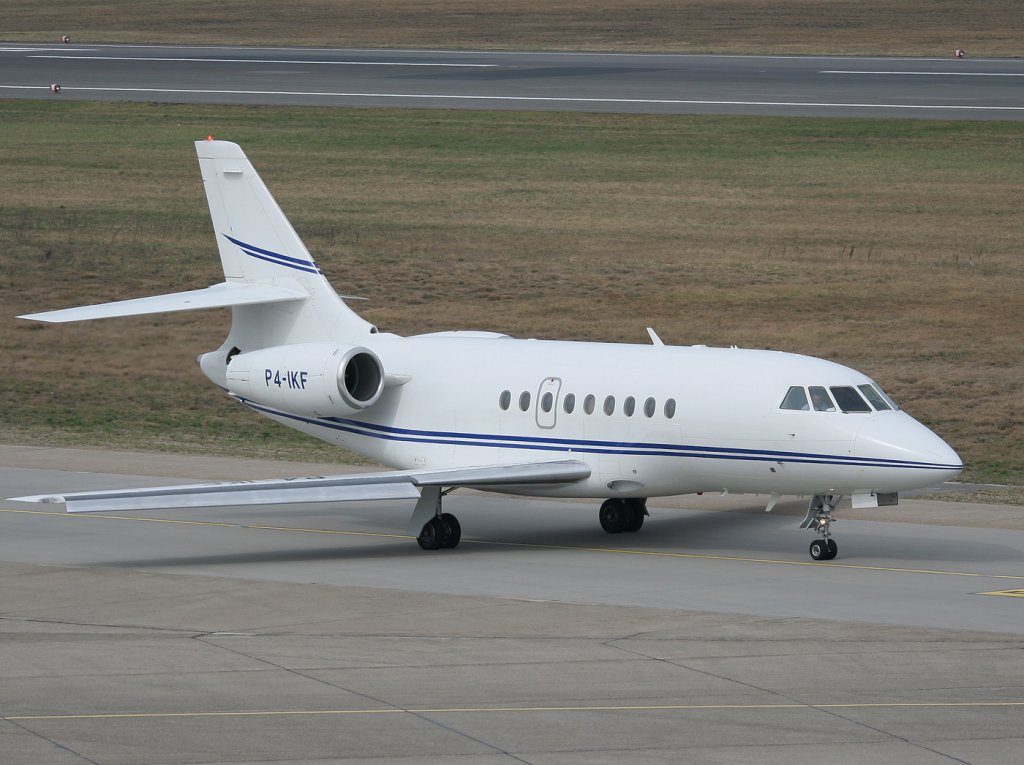 Ikaros Aviation Dassault Falcon 2000 P4-IKF auf dem Weg zum Start in Berlin-Tegel am 03.04.2011