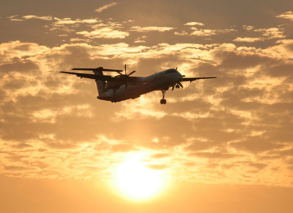 Air Berlin De Havilland Canada DHC-8-402Q D-ABQE kurz vor der Landung in Berlin-Tegel am Morgen des 04.10.2011