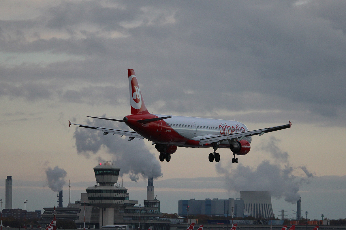 Air Berlin A 321-211 D-ABCK bei der Landung in Berlin-Tegel am 09.11.2013