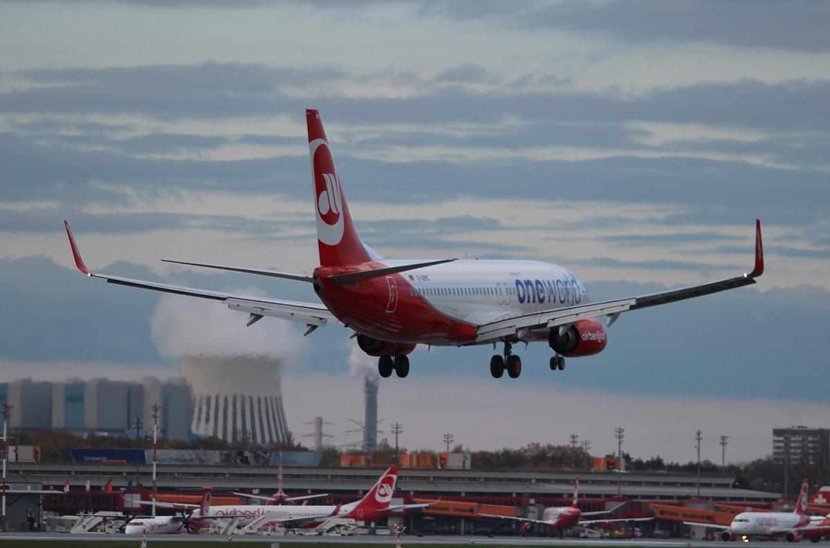 Air Berlin B 737-86J D-ABMC bei der Landung in Berlin-Tegel am 09.11.2013
