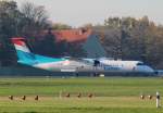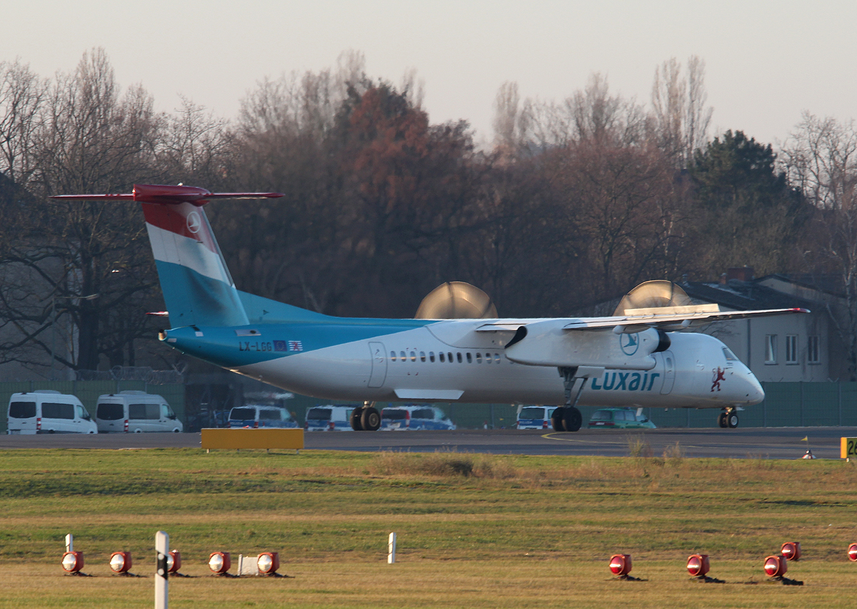 Luxair DHC-8-402Q LX-LGG kurz vor dem Start in Berlin-Tegel am 30.12.2013