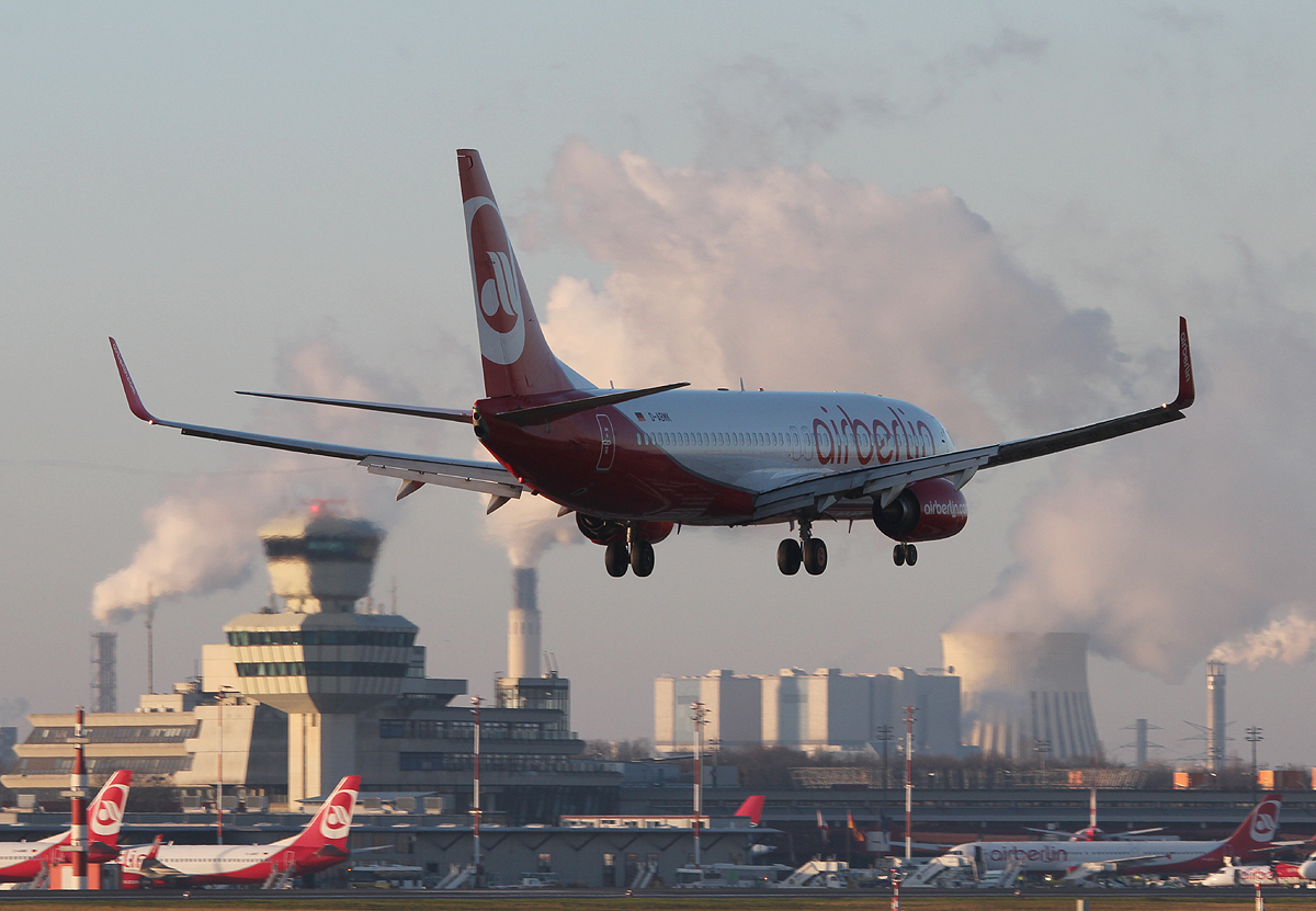 Air Berlin B 737-86J D-ABMK bei der Landung in Berlin-Tegel am 30.12.2013