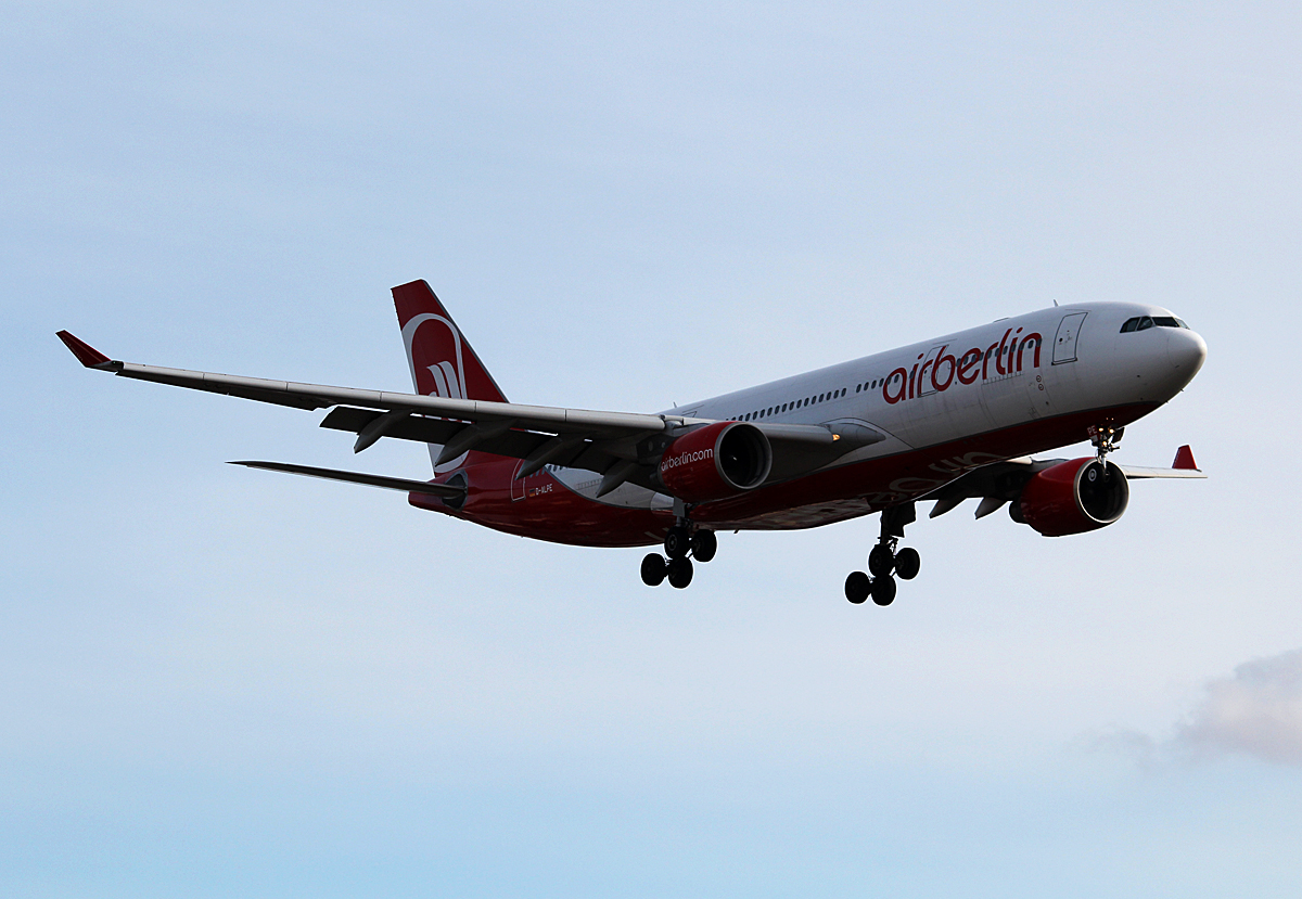 Air Berlin A 330-223 D-ALPE bei der Landung in Berlin-Tegel am 13.02.2014