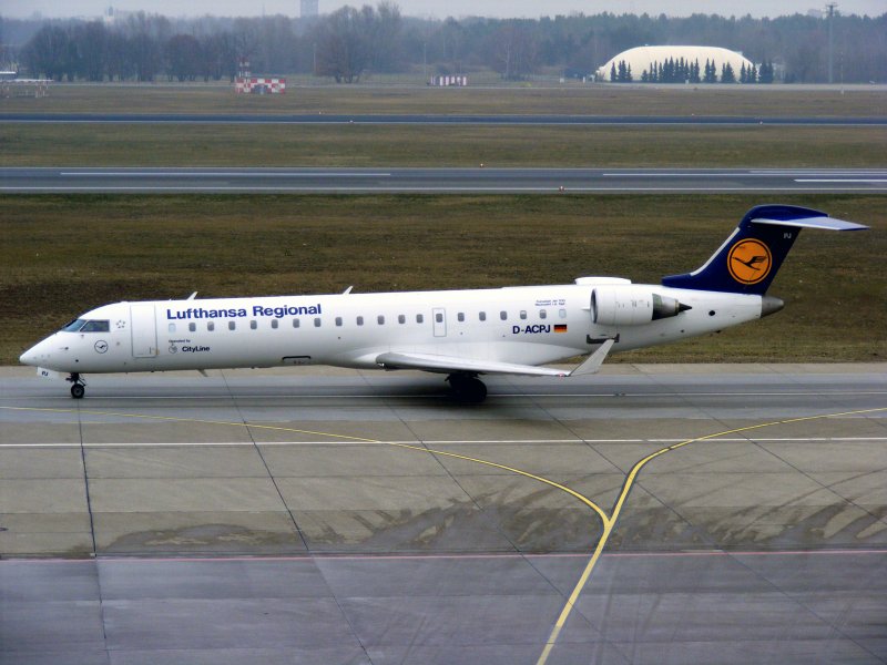 D-ACPJ, eine CRJ-700 von CityLine rollt am 29.12.2008 in Berlin-Tegel zum Gate.