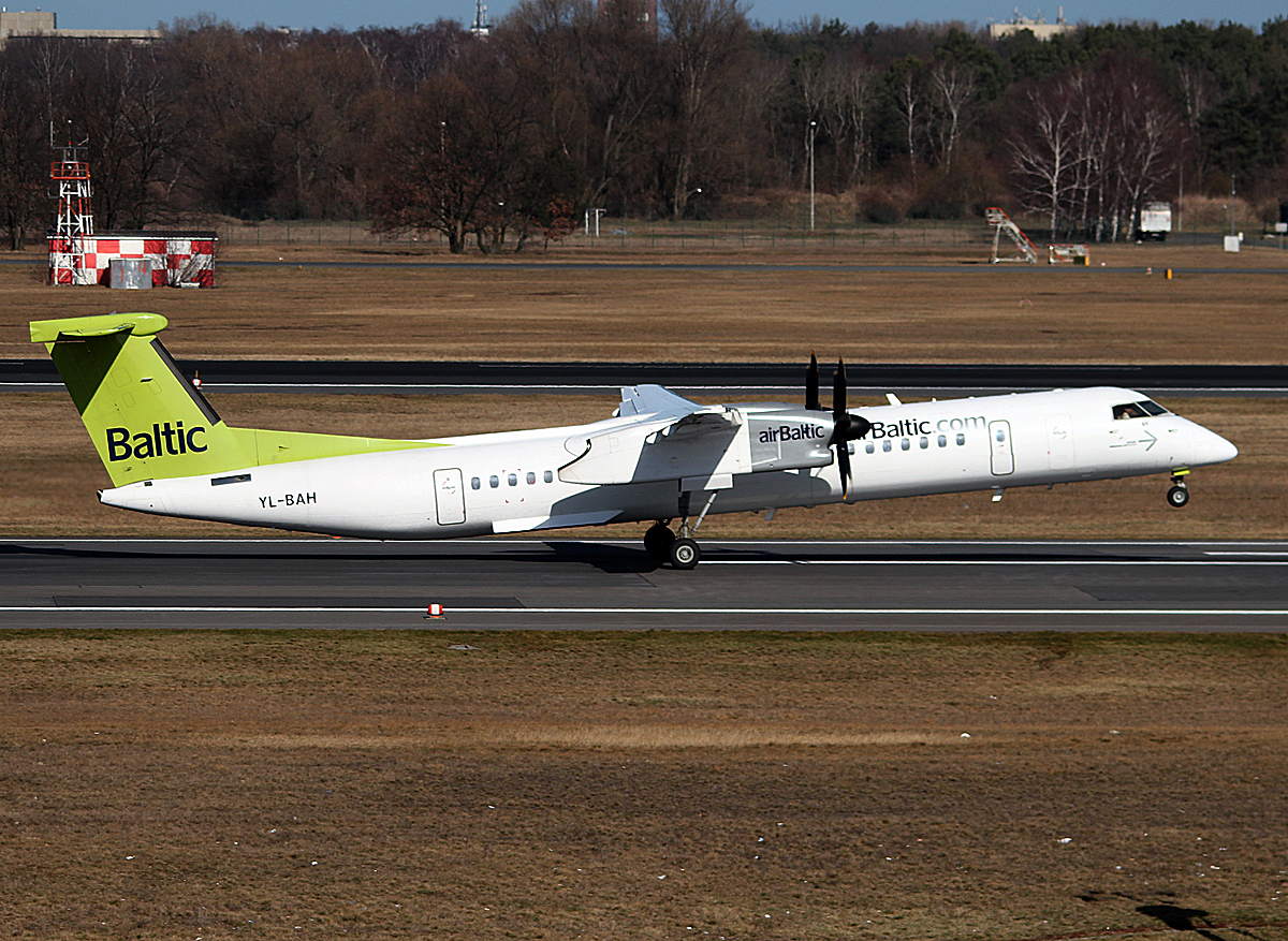 Air Baltic DHC-8-402Q YL-BAH beim Start in Berlin-Tegel am 08.03.2014