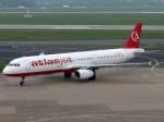 Atlasjet A 321-231 TC-ETF bei der Ankunft in Berlin-Tegel am 122.04.2014 bei Nebel und Nieselregen