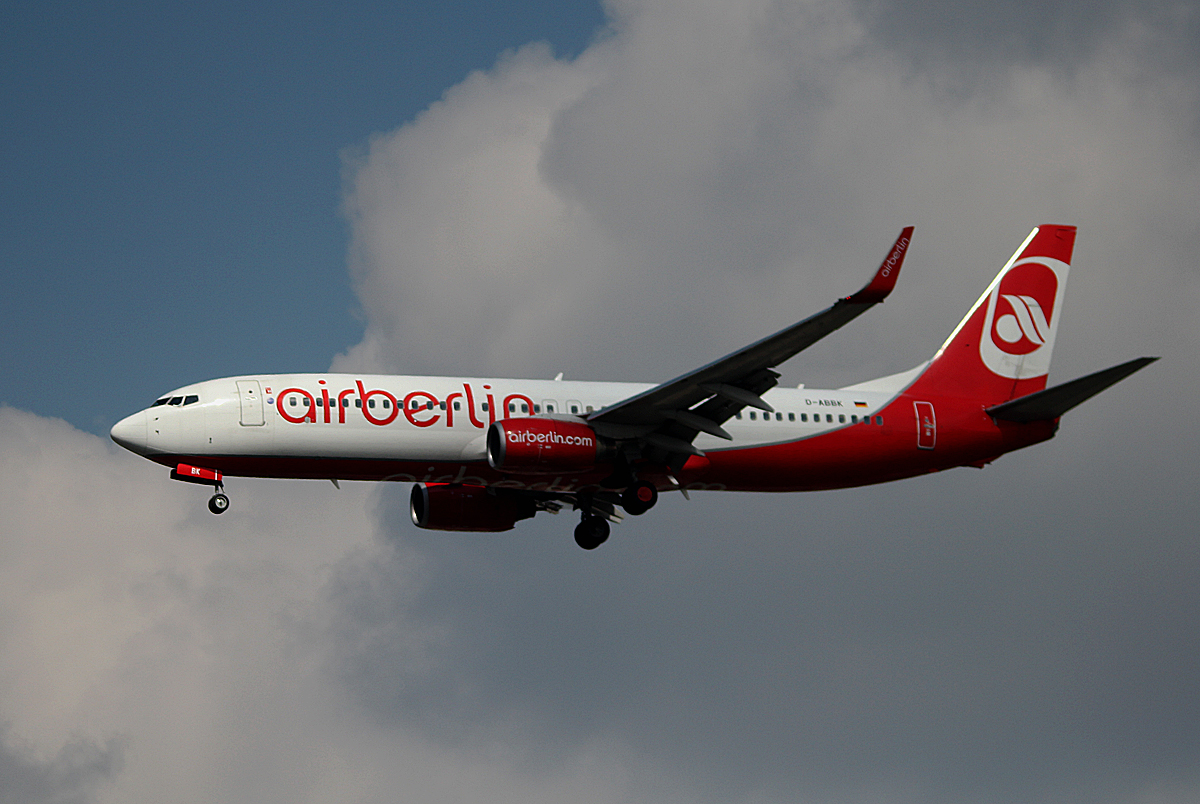 Air Berlin B 737-8BK D-ABBK bei der Landung in Berlin-Tegel am 12.04.2014