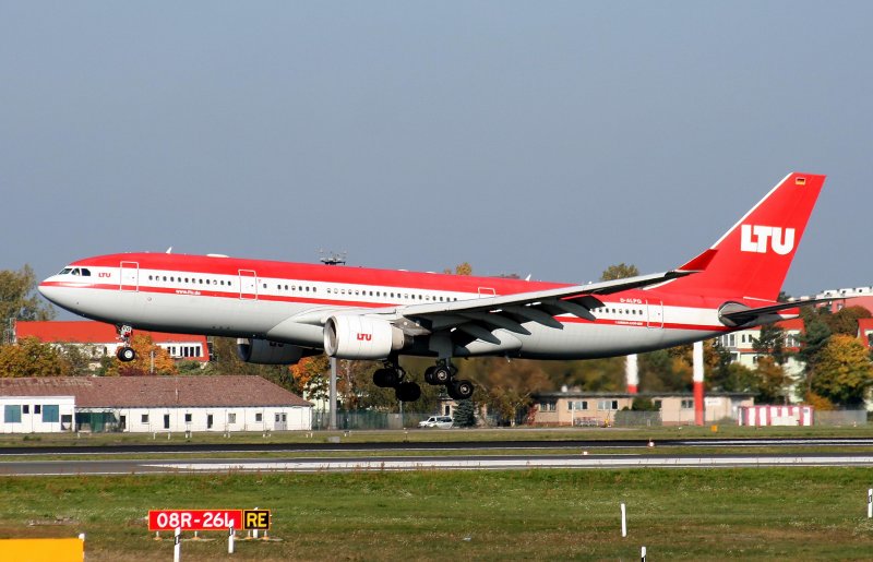 LTU A 330-223 D-ALPG bei der Landung auf dem Flughafen Berlin- Tegel am 11.10.2008