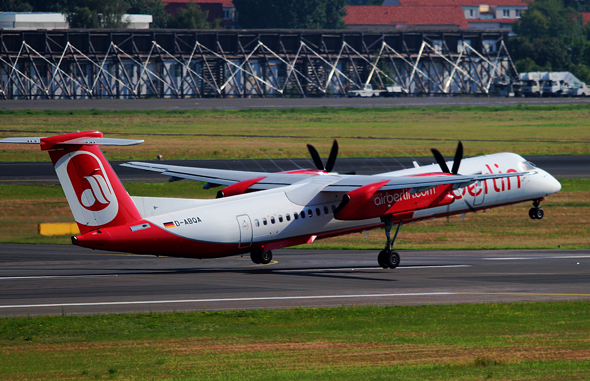 Air Berlin DHC-8-402Q D-ABQA beim Start in Berlin-Tegel am 11.07.2014