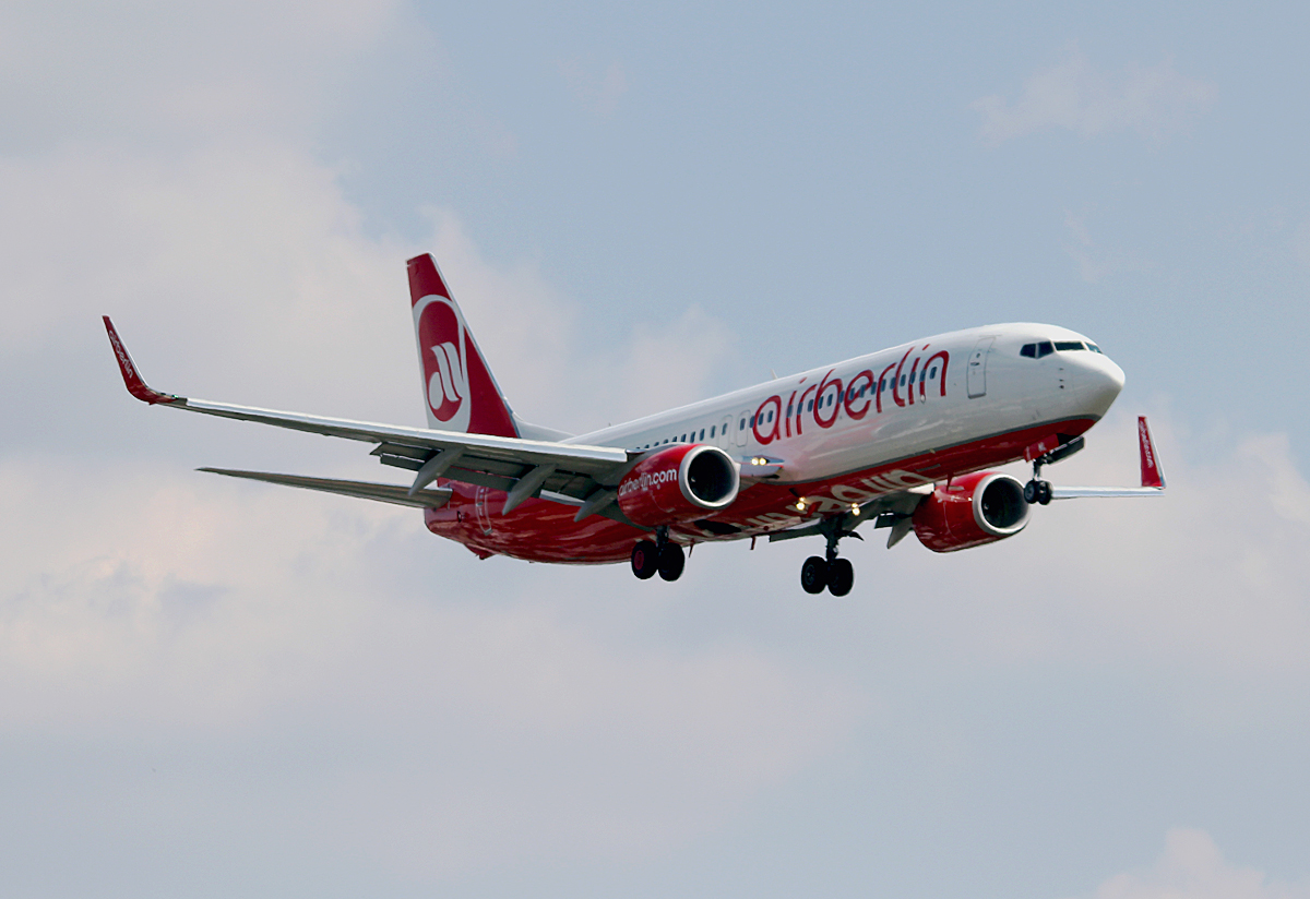 Air Berlin B 737-86J D-ABML bei der Landung in Berlin-Tegel am 08.08.2014
