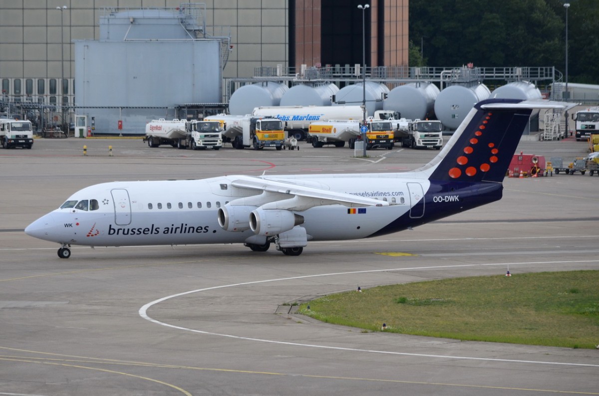 OO-DWK Brussels Airlines British Aerospace Avro RJ100    am 28.07.2015 in Tegel zum Gate