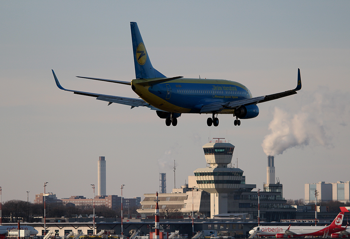 Ukraine International B 737-36Q UR-GBD bei der Landung in Berlin-Tegel am 06.12.2015
