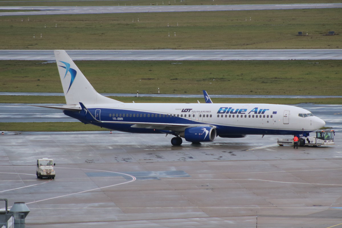 B737-800 der Blue Air YN-BNM im Auftrag für LOT am 20.12.18 in Düsseldorf
