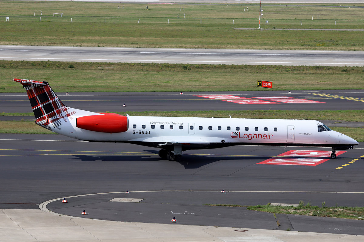 Loganair, G-SAJO "Clan Stewart / Clann Stiubhart", Embraer, ERJ-145 MP, DUS-EDDL, Düsseldorf, 21.08.2019, Germany