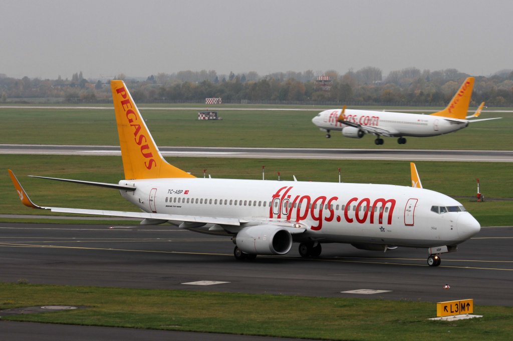 Pegasus Airlines, TC-ABP "Nisa", Boeing, 737-800 wl (hinten landet gerade die TC-AIS) , 10.11.2012, DUS-EDDL, Düsseldorf, Germany
