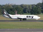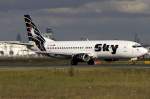 Sky B737-400 TC-SKD kurz vor der Landung auf der 05R in DUS / EDDL / Düsseldorf am 11.05.2008
