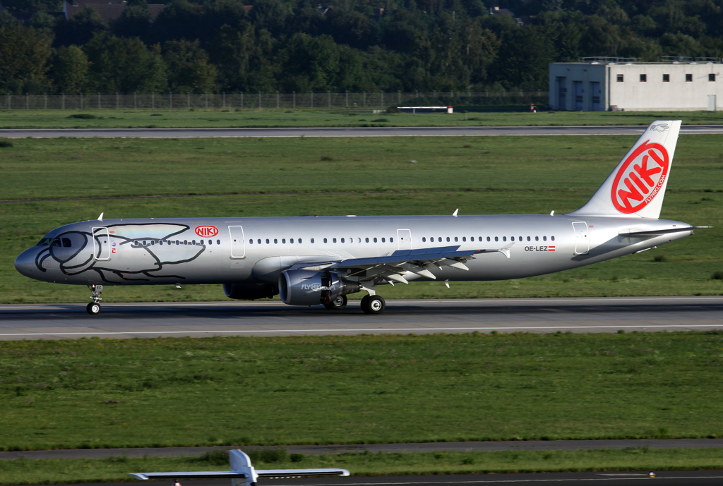 Niki A-321 OE-LEZ bei der Landung auf 23L in DUS / EDDL / Düsseldorf am 20.08.2014