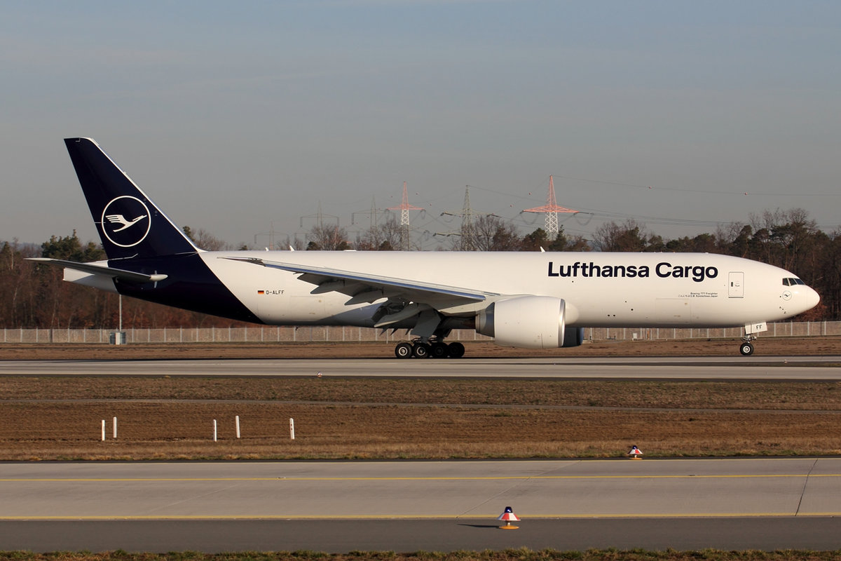 Lufthansa Cargo Boeing 777-FBT D-ALFF bei der Landung in Frankfurt 20.3.2019