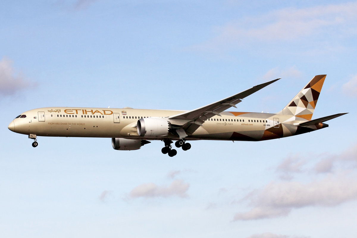 Etihad Airways Boeing 787-10 Dreamliner A6-BMA bei der Landung in Frankfurt 19.2.2021