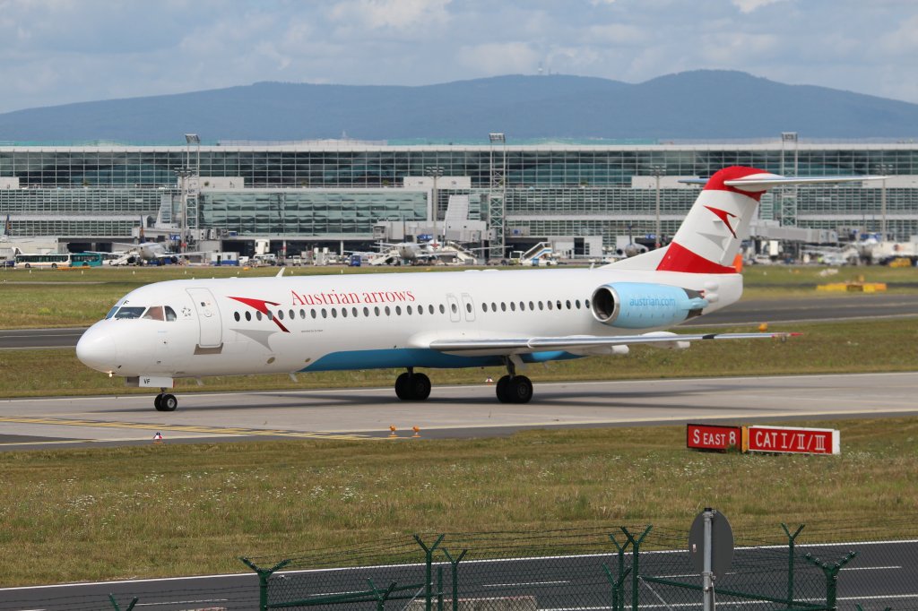 Austrian Arrows Fokker 100 OE-LVF am 16.08.2012 auf dem Flughafen Frankfurt am Main