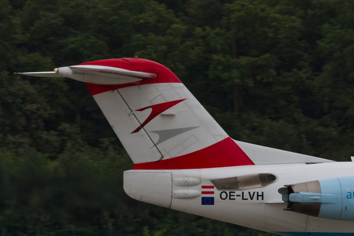 Austrian (OS), OE-LVH "Minsk", Fokker, 100 (Seitenleitwerk/Tail), 15.09.2014, FRA-EDDF, Frankfurt, Germany