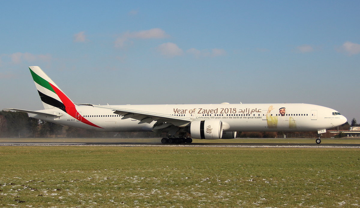 Emirates, A6-ECY, MSN 35595, Boeing 777-31H(ER), 13.02.2018, HAM-EDDH, Hamburg, Germany (Year of Zayed 2018 livery)