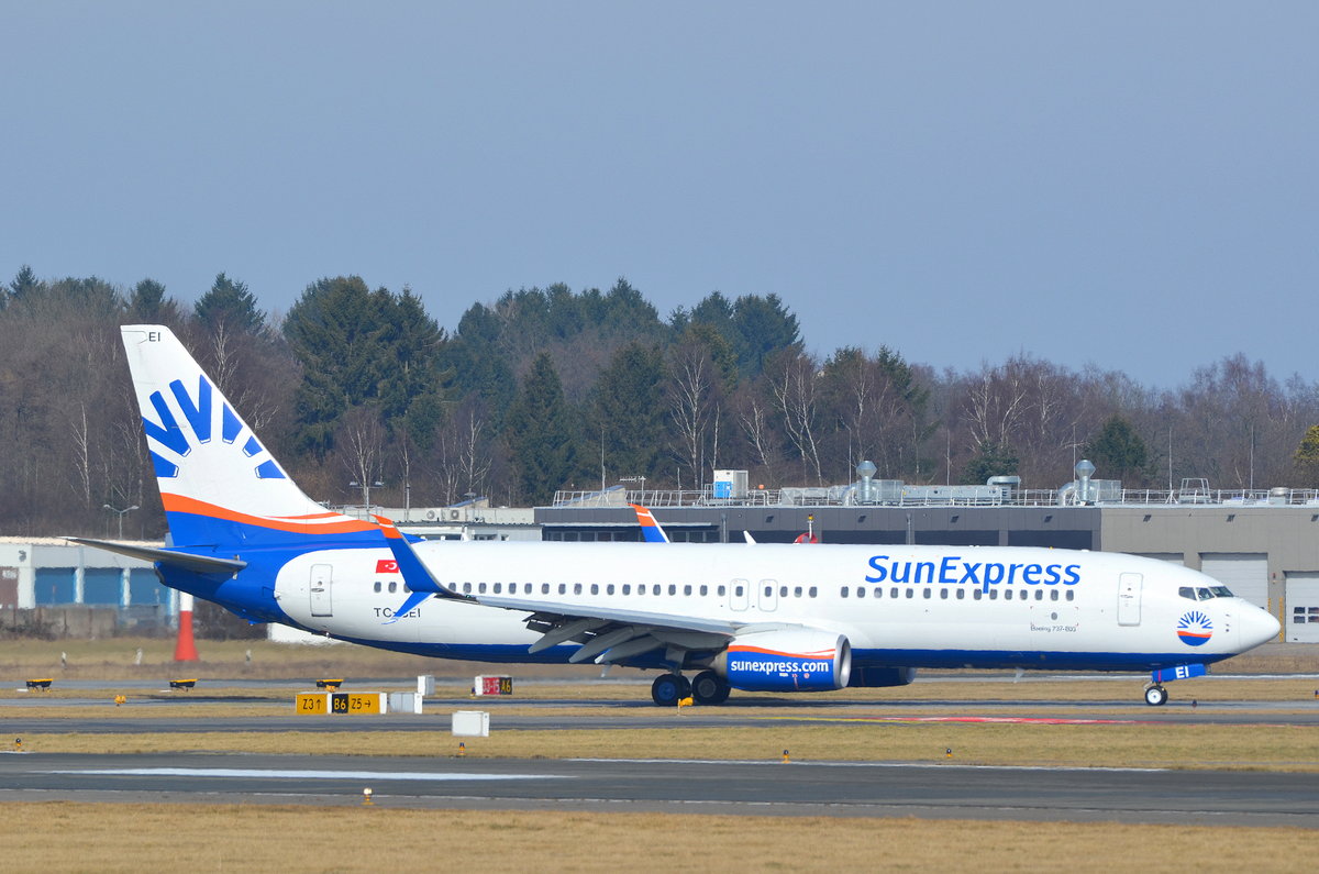 SunExpress Boeing 737-800 TC-SEI beim rollen zum Gate nach der Landung am Airport Hamburg Helmut Schmidt am 11.03.18