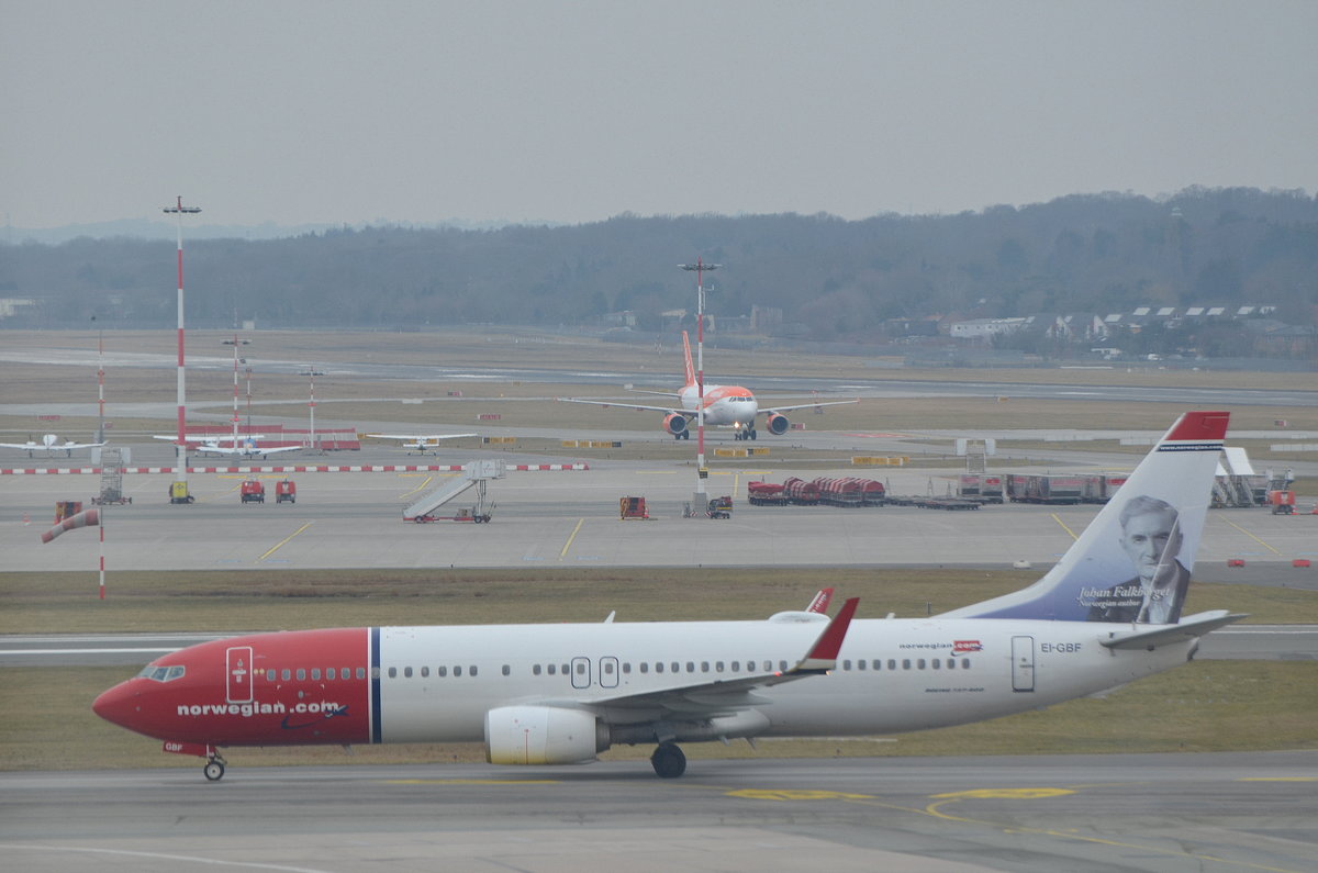 Norwegian Boeing 737-800 EI-GBF das Heck dieser Maschine ziert Johan Falkberget (Johan Falkberget war ein norwegischer Schriftsteller) aufgenommen am 25.03.18 am Airport Hamburg Helmut Schmidt.