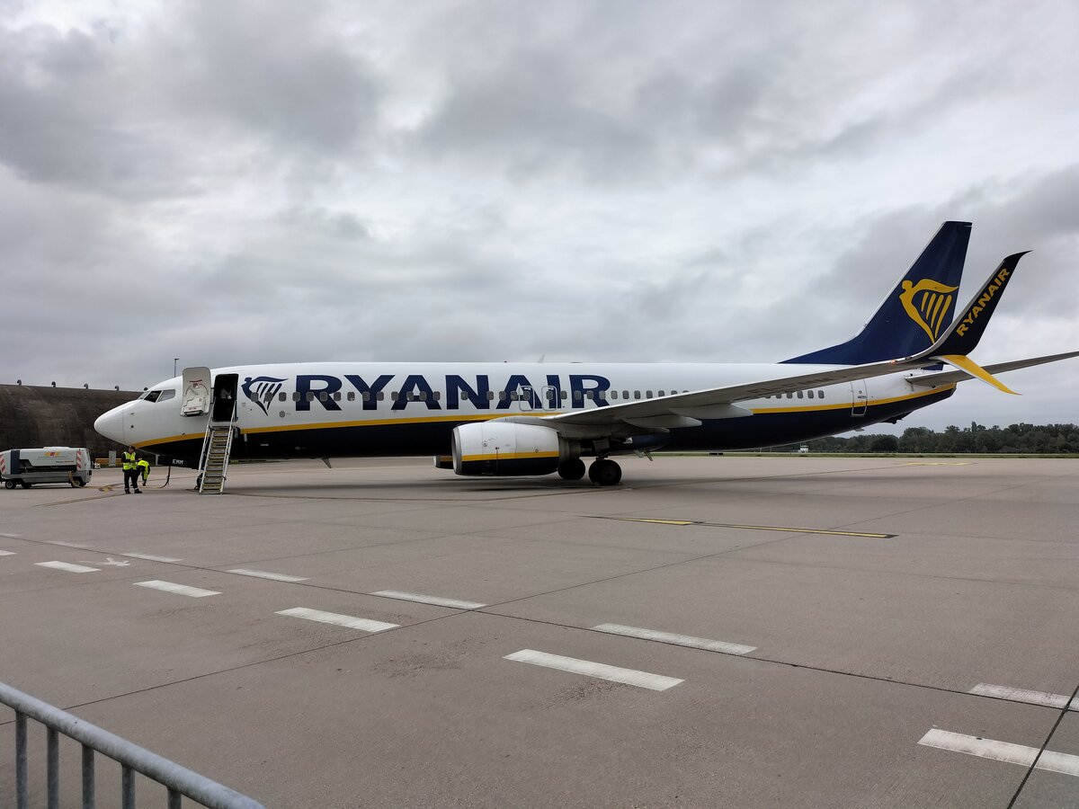 Ryanair EI-ENK vom Typ Boeing 737-8AS, Baujahr 2011, am Baden Airpark am 30.09.2025