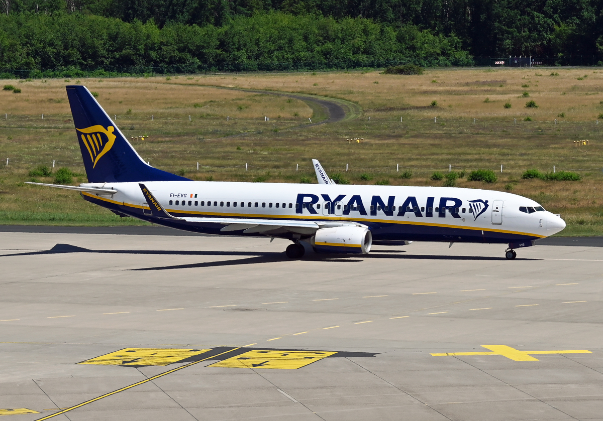 B 737-800 der Ryanair, EI-EVG, rollt zur Startbahn in CGN - 04.07.2022