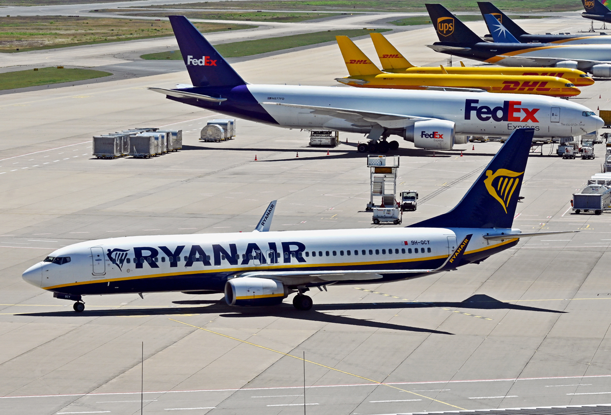 B 737-800 der RyanAir, 9H-QCY, rollte an der "Frachterlinie" in CGN vorbei - 04.07.2022