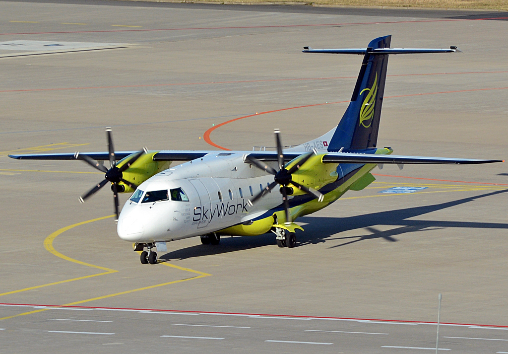 Do 328-110 HB-AES der Sky Work in Parkposition auf dem Flughafen Köln-Bonn - 10.04.2014