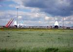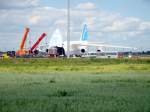 Fliegende U-Bahn: Seit gestern werden auf dem Flughafen Leipzig/Halle Waggons für die U-Bahn in Delhi verladen, 27.05.2009